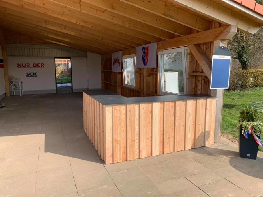 Am vergangenen Wochenende hat ein Teil unser 1. Herren einen Outdoor Tresen gebaut, damit in Zukunft die Grillwurst anständig rausgegeben werden kann und bald auch kühle Getränke.